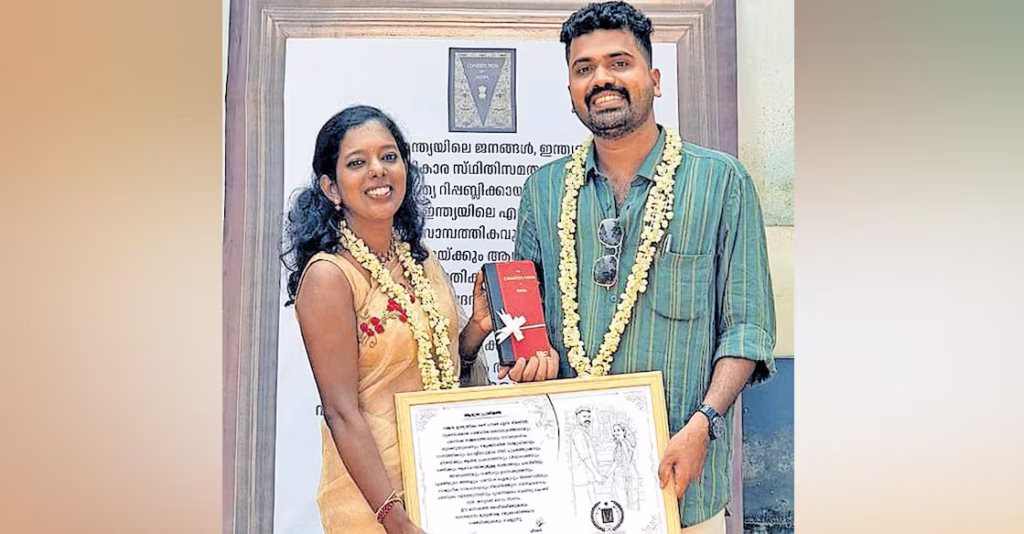 P.S. Sheethal, a higher secondary school teacher from Kollam, and R. Jithin Krishna, a village assistant from Ayalur, registered their marriage at the Nenmara Sub-Registrar Office on January 1. The couple took a pledge together, affirming their union as equal citizens of India founded on mutual consent, dignity, and constitutional values.